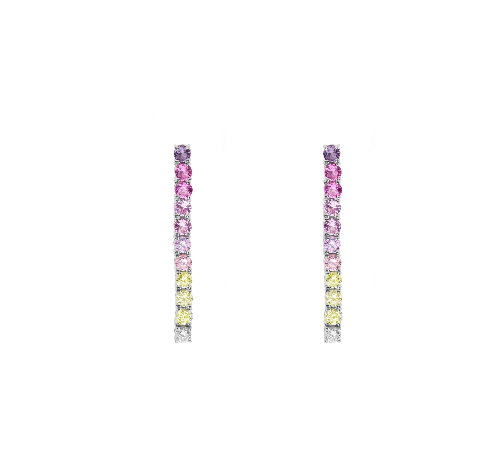 Gli orecchini RAINBOW sono lunghi, con una montatura a griffe affilata che mette in risalto con sicurezza i vivaci zirconi colorati all'interno. Il loro design sorprendente aggiunge un tocco di colore a qualsiasi outfit.